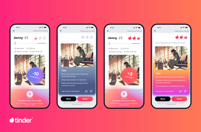 মঙ্গলবার, সংস্থা ঘোষণা ওপেনএআই দ্বারা চালিত একটি নতুন গেম, ব্যবহারকারীরা এআই বটের সাথে ফ্লার্টিং অনুশীলন করতে, মিলিত হয়ে যাওয়া পরিস্থিতিগুলি পুনরায় প্রকাশ করতে এবং তাদের ডেটিং দক্ষতার উন্নতির জন্য পরামর্শ সহ স্কোর গ্রহণের অনুমতি দেয়।