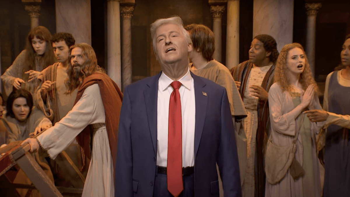 শনিবার নাইট লাইভ এই সপ্তাহে মন্দিরটি পরিষ্কার করার একটি বিনোদন দিয়ে এই শোটি খুললেন, বাইবেলের একটি উল্লেখযোগ্য মুহূর্ত যেখানে যীশু খ্রীষ্ট বণিক এবং অর্থ পরিবর্তনকারীদের যারা উপাসনা ঘরটিকে “চোরদের ডেন” হিসাবে পরিণত করেছিলেন তাদের বের করে দেয়।